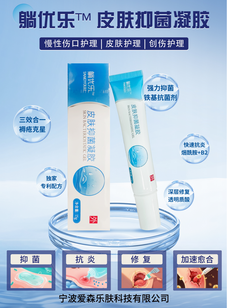 躺优乐皮肤抑菌凝胶凭借其创新的研发理念、绿色健康的天然成分以及卓越的综合功效,致力于为长期卧床患者及褥疮患者提供全面、温和且高效的护理解决方案,全力守护患者的皮肤健康与生活品质。